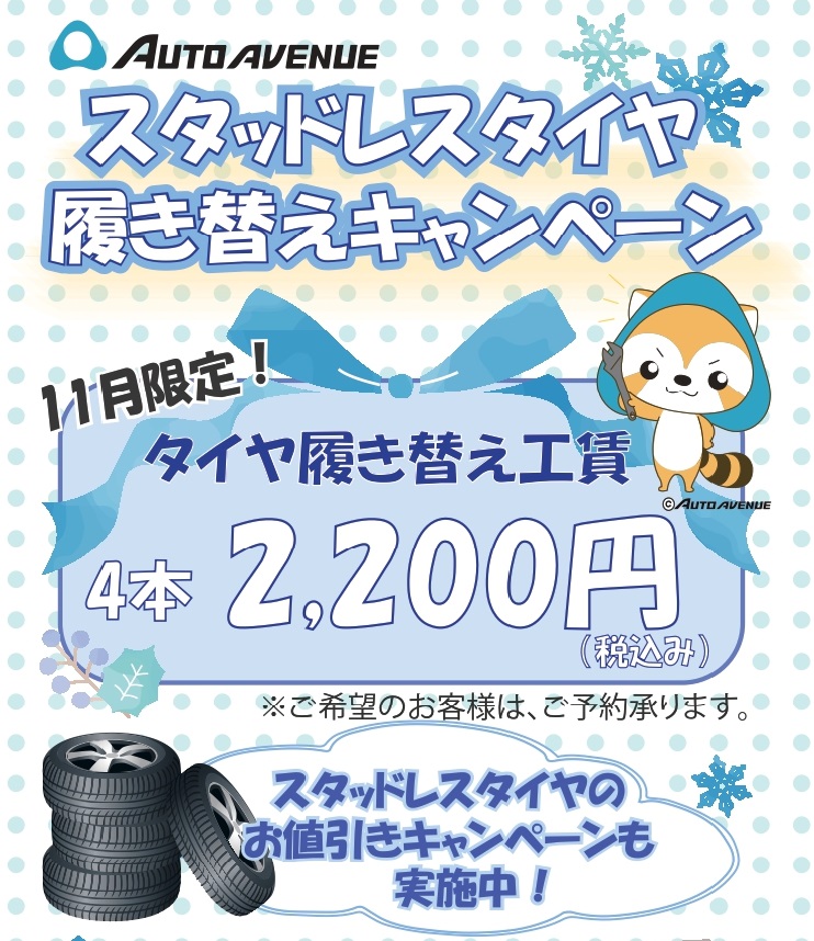 11月限定!スタッドレスタイヤ履き替えキャンペーン!