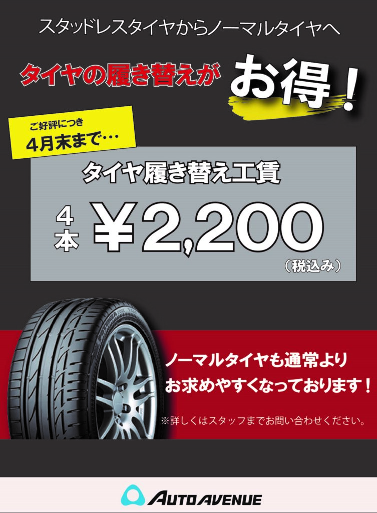 4月末まで延長!タイヤ履き替えキャンペーン実施中!!!